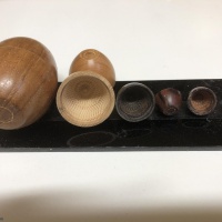LARGEST EGG IS WOOD THREADED (NOT EASY TO DO) TO SECURE ALL THE EGGS TOGETHER, SIZE  33MM x 48MM