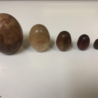 LARGEST EGG IS WOOD THREADED (NOT EASY TO DO) TO SECURE ALL THE EGGS TOGETHER, SIZE  33MM x 48MM