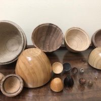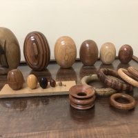 LARGEST EGG IS WOOD THREADED (NOT EASY TO DO) TO SECURE ALL THE EGGS, SIZE  90MM x 130MM
