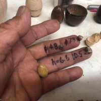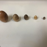 LARGEST EGG IS WOOD THREADED (NOT EASY TO DO) TO SECURE ALL THE EGGS, SIZE 33MM x 48MM