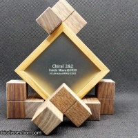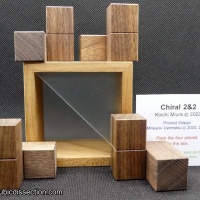 This is a extremely challenging puzzle. Pack the four pieces into the restricted box. The opening is restricted by the top that covered at a diagonal leaving the other diagonal half your only means of access.