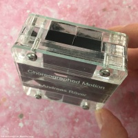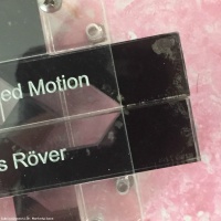 In the third photo you can see internal marks on the (transparent) pieces from where they have been glued together with acrylic solvent. This is visible on other copies, to a greater or lesser degree, as all 140 were glued by hand and the marks varied. I have photographed the area with the most visible glue stain.