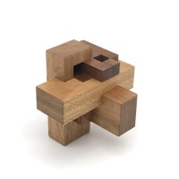The interlocking puzzles I chose to make this update mostly have one thing in common; they have unusual shapes! Claw 3 is no exception. Three larger "claw" pieces wrap around a small 4x4 cube. This puzzle was tricky to make because of the number of units...I had to work with very small stock in order that the final result didn't turn out too large. It's a very tricky puzzle with a unique level 7 solution. I had a lot of fun making it, and it certainly looks different next to your normal cube puzzles.