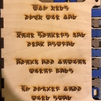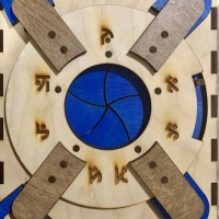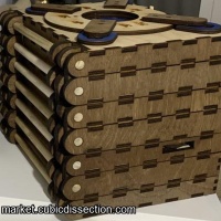Description: Codex Silenda by Brady Whitney. The classic 7 page edition, blue theme. Some flaws in laser cut wood but manufactured that way. By designer unique flaws give it an authentic feel.