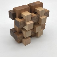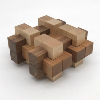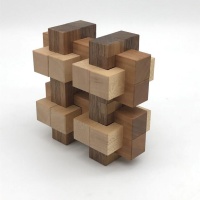 If you liked solving two six piece burrs at the same time, how about four! With a very difficult level 18.6.8 solution, Cold Fusion steps it up a notch from the already difficult Fusion puzzle. Three different woods used for aesthetics and also to give the solver a chance (this puzzle would be exponentially more difficult in solid wood).