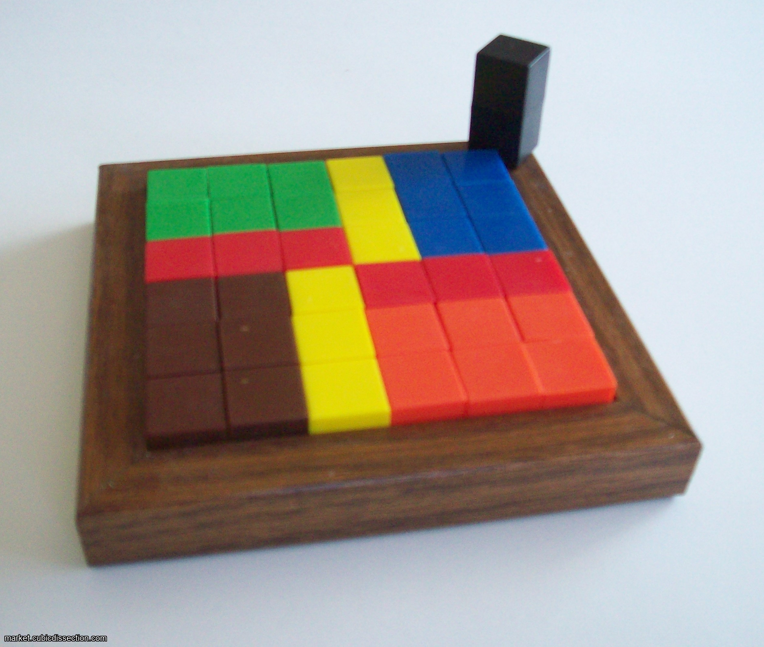 1. Start with the 1x2 black piece in an upright position on “A”.