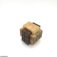 To assemble the puzzle in this symmetrical colour combination the puzzle has a unique solution. This solution is a level 62 disassembly; this means that it will take a minimum of 62 moves in exactly the correct order to remove just the first piece. The puzzle requires a total of 105 moves to remove all pieces and take it completely apart. The number of moves to remove each piece in order is first piece – 62 next piece – 4 next piece, then 21 next piece 1 and so on – 2.2.1.1.1.2.2.2.1.1.1.2."