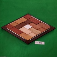 10 pcs in wood tray form a quadrilateral shape with symmetrically offset heights in a grid pattern.  Center piece is topped with aluminum.  Wood tray with aluminum rails.  Goal: fill tray with five different woods across the girdle, maintaining the offset height grid pattern.