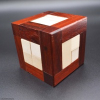Disassemble and assemble framed packing puzzle Cube in Cube by Jean-Claude Constantin.  Seven Maple pieces trapped in Padouk frame - very nice looking puzzle.