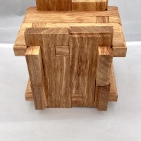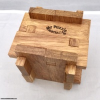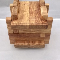 A very elegant design by Bill Darrah who is well known for designing very difficult puzzles. As well as being a burr it is actually a box with an inside space of 45mm x 45mm x 45mm."