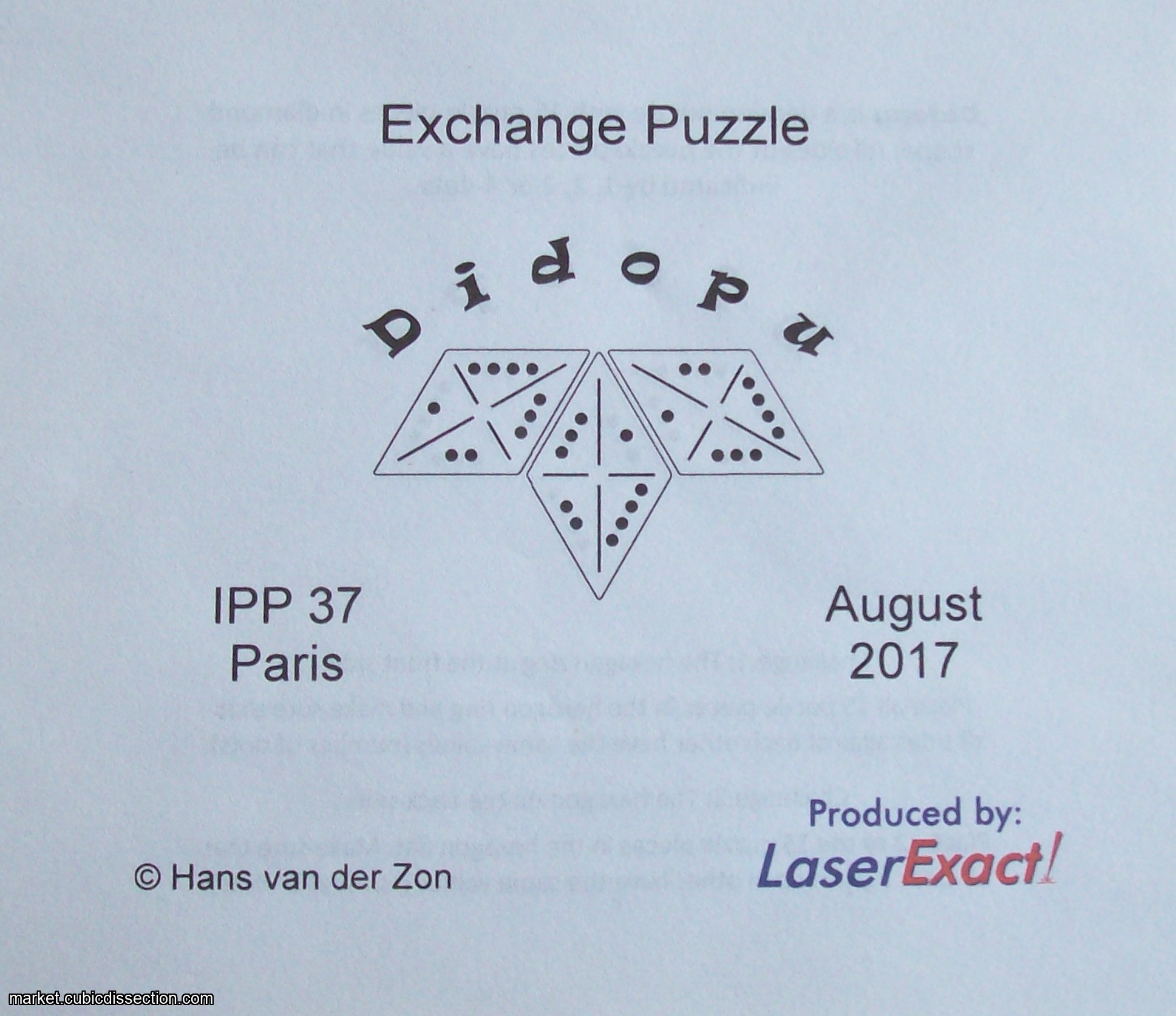 This puzzle is a exchange puzzle by Hans van der Zon for the International Puzzle Party 37 held in Paris, France 2017
