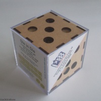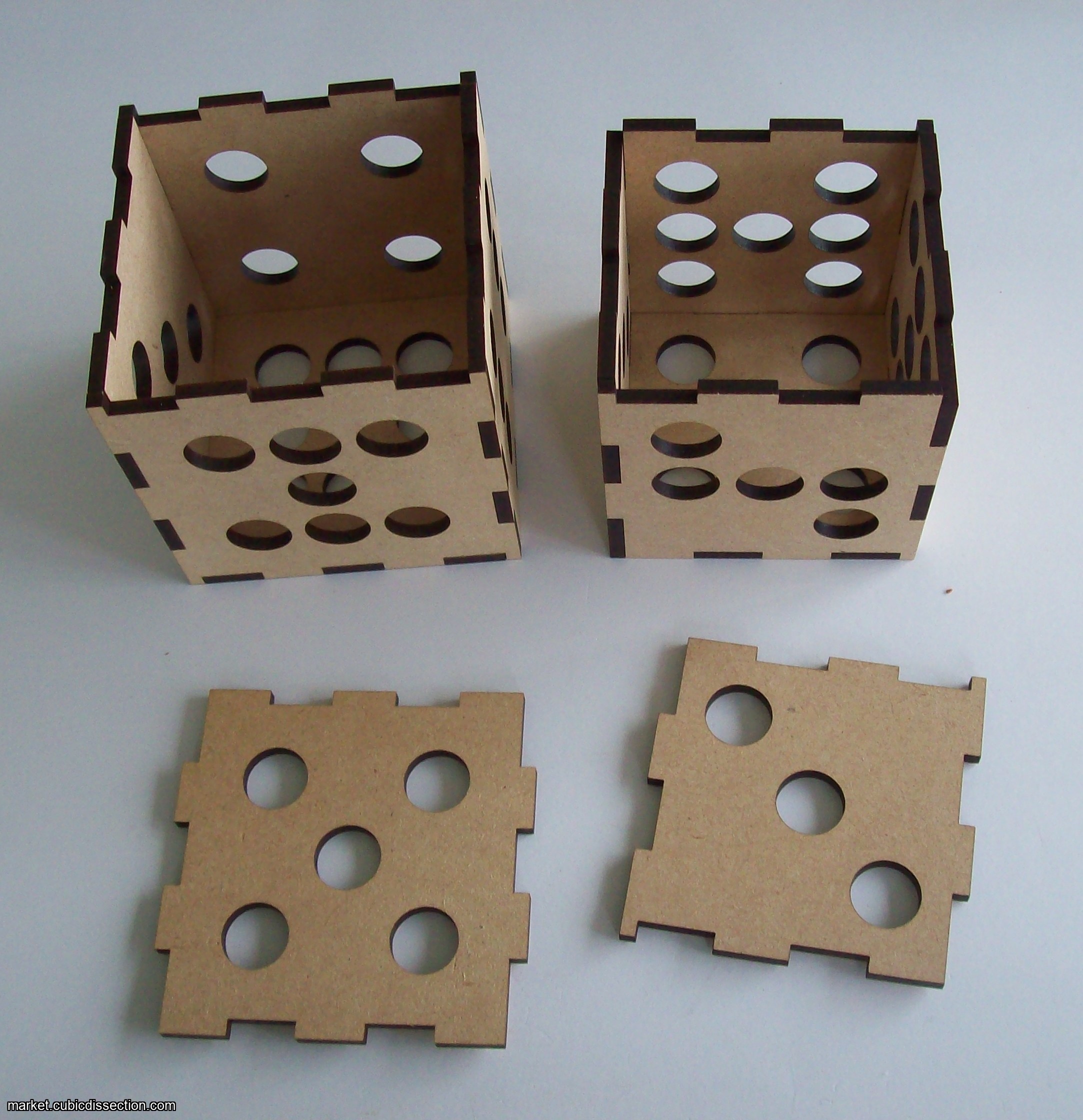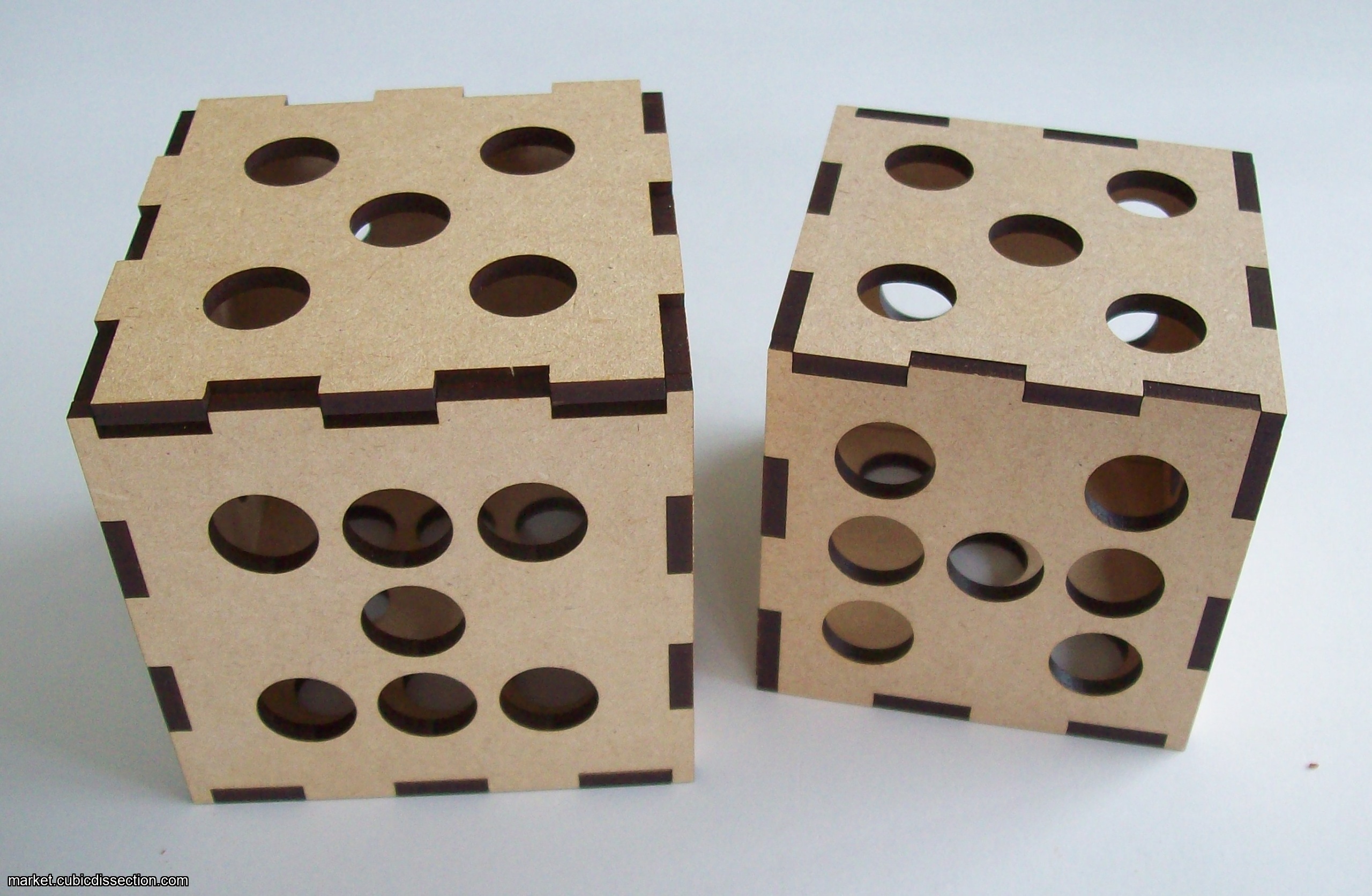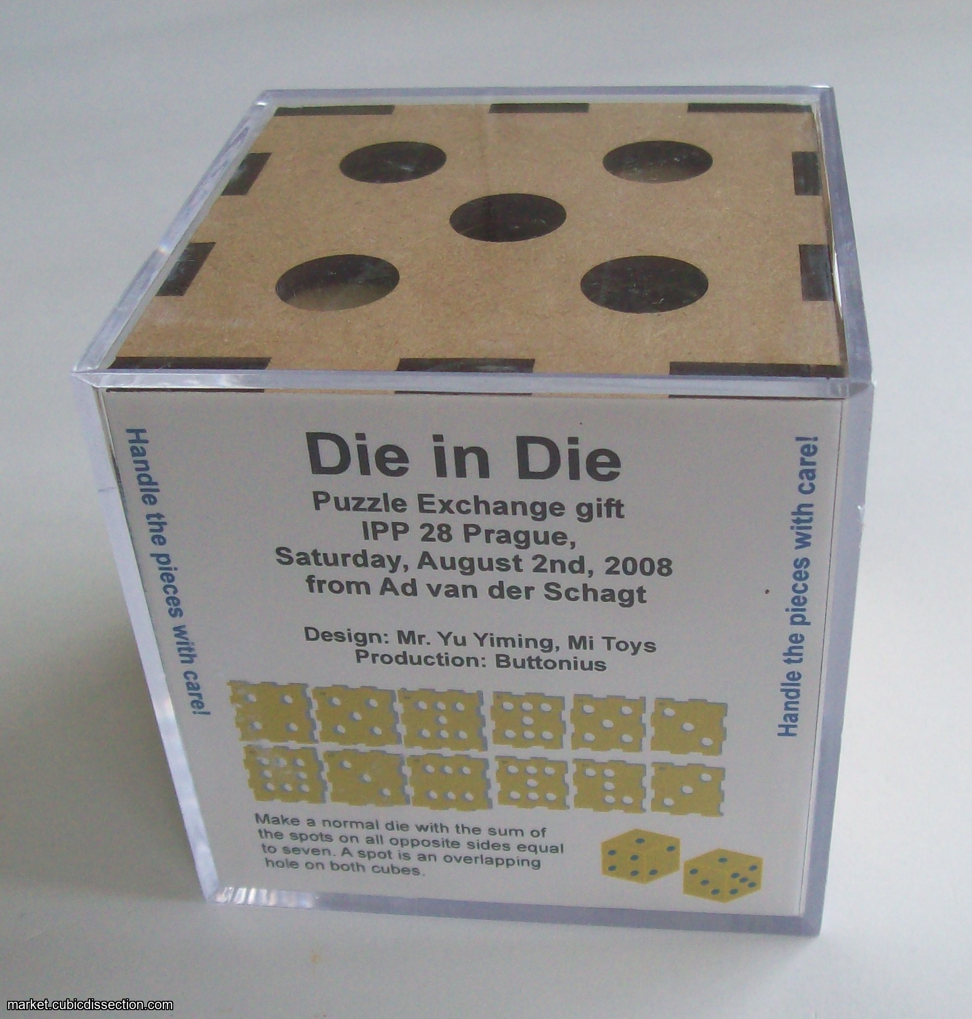 Make two dice and put the smaller one into the larger, to form a normal die with the sum of spots on opposite sides equal to seven. A spot is the hole going through both cubes.