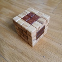 Don’s Dilemma is an Interlocking Cube, so no rotations are involved. While the move count is fairly low, it's easy to get confused on how to put the pieces together. Good thing the wood colors help indicate how everything is meant to come together! It's also a very early puzzle made by Brian Menolds, so the fit is fairly tight. Once the pieces are together, it's not easy to get the pieces apart without using some force. So be sure to remember how the pieces come back out!