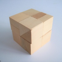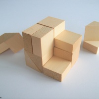 Quite recently, almost the end of this May [2005], Mr. Mitsuhiro Odawara hit upon the idea of a put-together puzzle with pieces combining “a half cube prism” and “a half cube tile” shown in the figures below.
