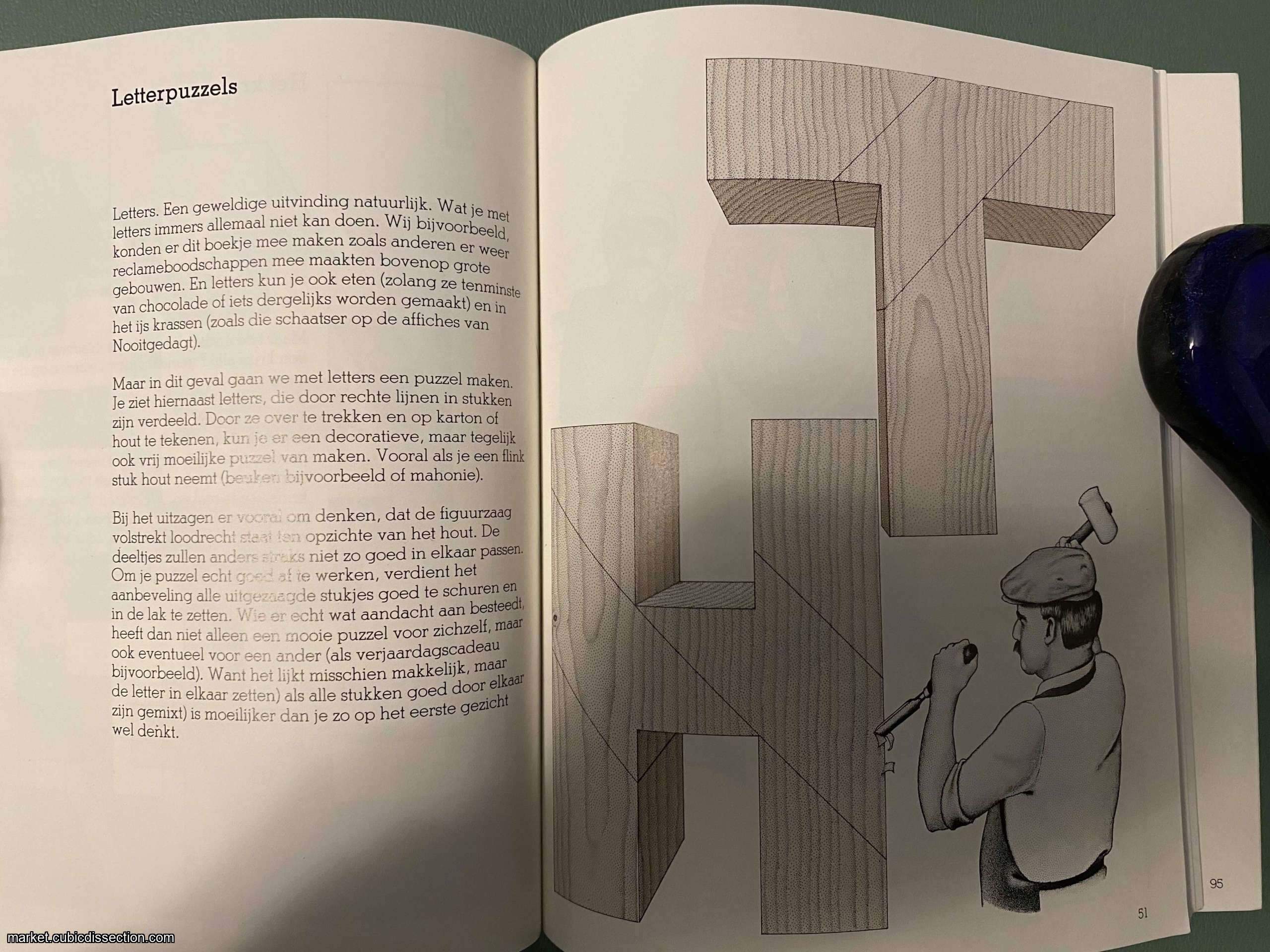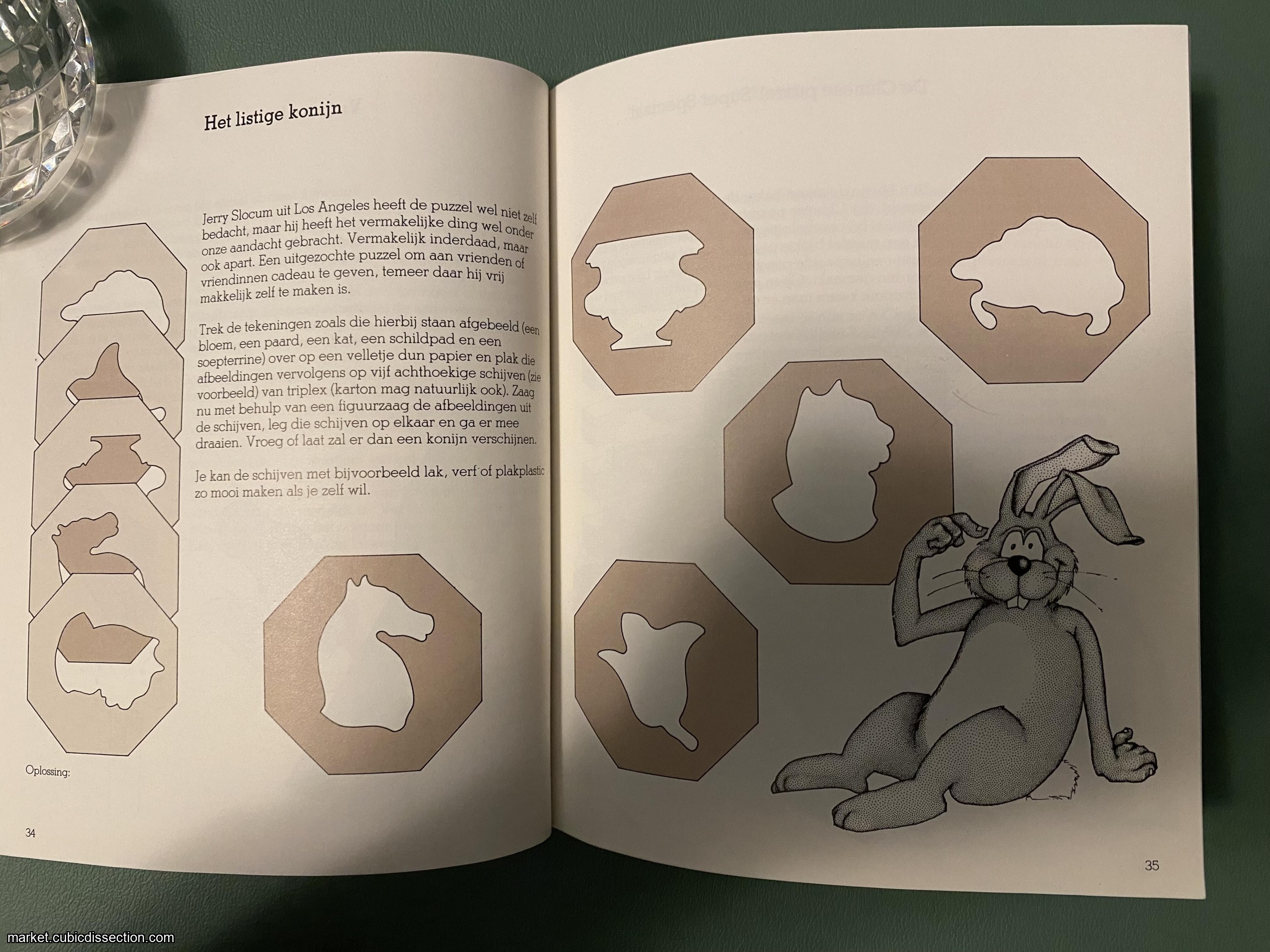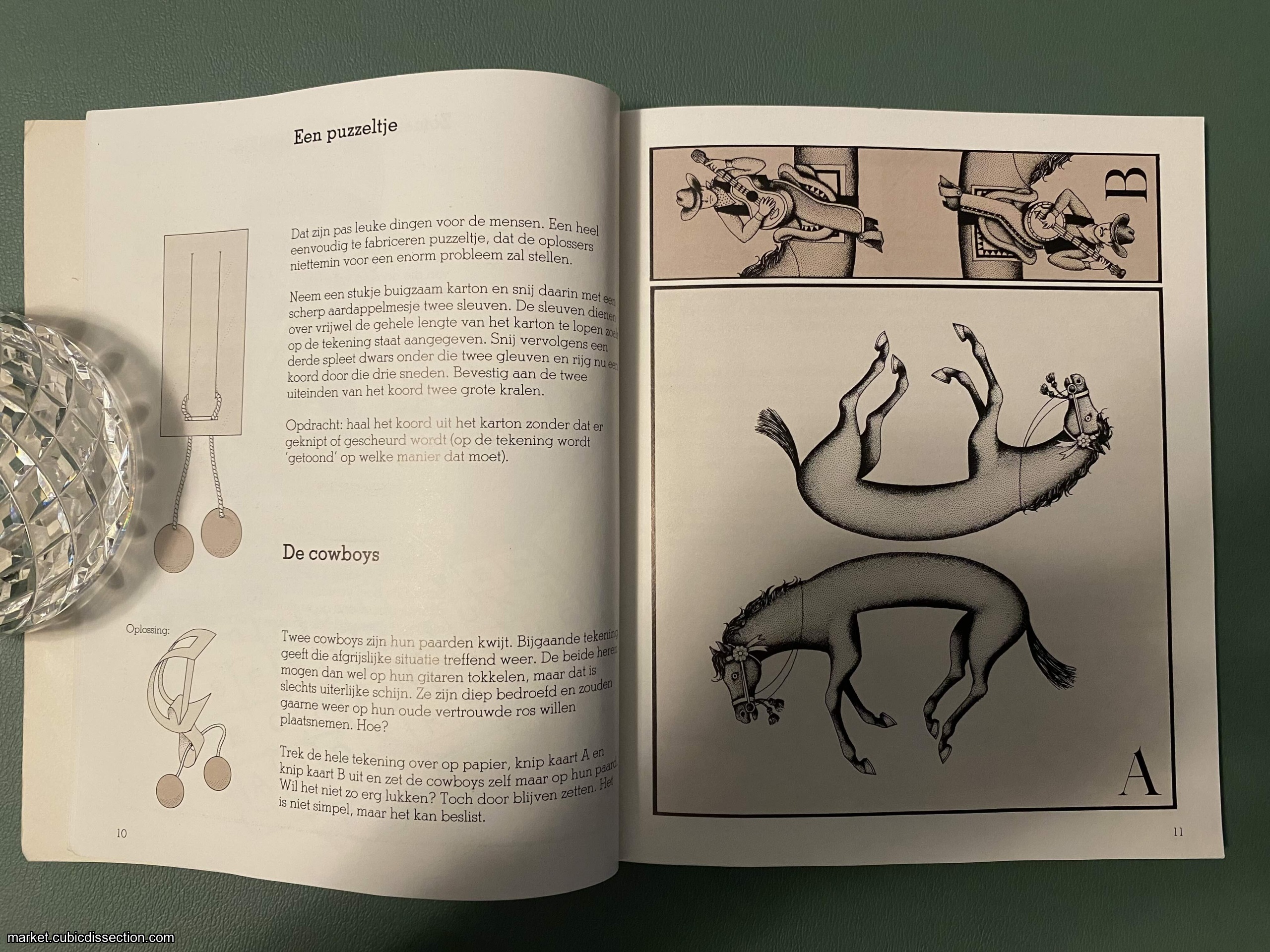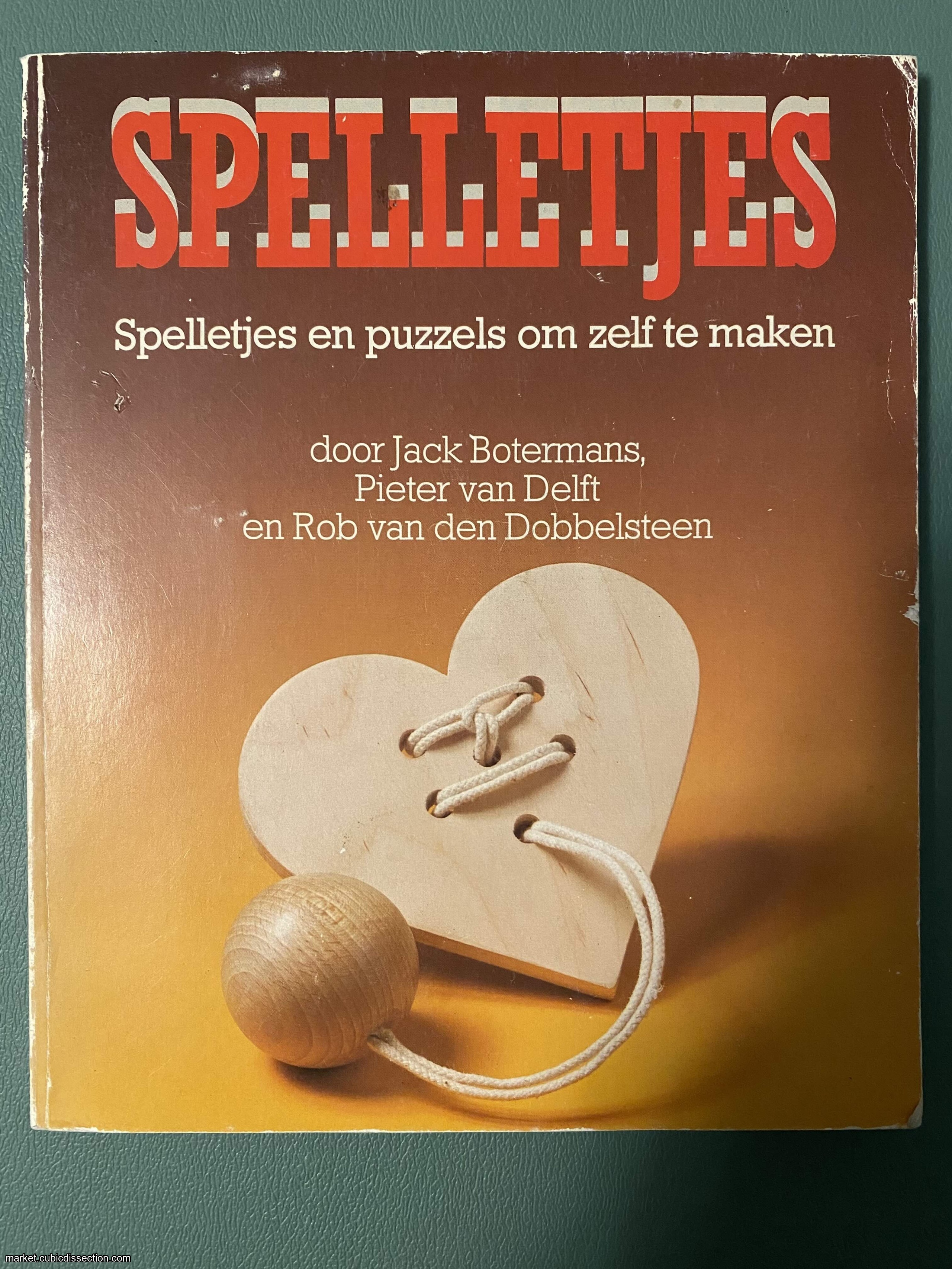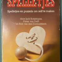 Spelletjes is Pieter van Delft's and Jack Botermans' 1980 follow-up to their iconic and seminal work, Creative Puzzles of the World. The 96-page book contains descriptions of many mechanical puzzles, and as shown in the second photo, the back cover features a BEAUTIFUL colorful vanish puzzle. The book is in good condition as evident from the photos. This would be an excellent addition to a mechanical puzzle library.