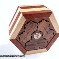 The Stickman Edelweiss Puzzlebox is roughly 5” x 5” x 3”, and comes with its own 6-page fully-illustrated instruction book. It is hallmarked with the Stickman logo, and limited in edition to 100 completed copies.