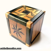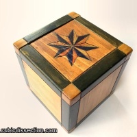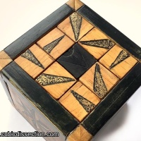 I purchased this puzzle box from Thomas Cummings back in 2015.  This is Thomas’s very first puzzle box and is marked inside as #2 of 7.  The puzzle box was crafted to look weathered and it displays like an old relic.   Thomas put a secret surprise which is still in the puzzle box for those who solve it!
