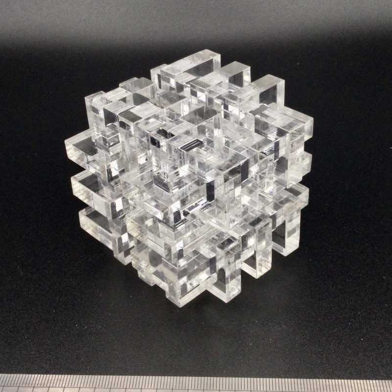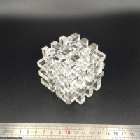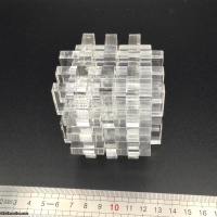This puzzle consists of 18 pieces, laser-cut from (nominally) 8mm clear acrylic sheet, there are only two kinds of pieces. There are 10 copies of the figure 8 piece and 8 copies of the figure 8 piece with 2 units removed.
