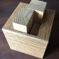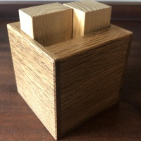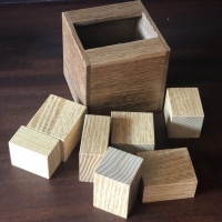 This packing puzzle looks simple but it is anything but! Fit 7 blocks into a box with a partially restricted opening.