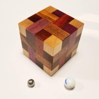 This puzzle also includes a new feature: a steel ball bearing. This feature was suggested by someone who purchased one of the older Exolution puzzles, and thank you for the suggestion. Without giving away the purpose of the bearing, as it's part of the puzzle, let me just say: "NO EXCESSIVE FORCE IS REQUIRED TO OPEN THIS PUZZLE!" If a piece won't move fully or at all, then you need to try something else.