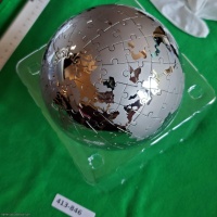 Metal Globe, beautiful contrasting brushed/polish finish shows map of the world. Disassembles into many interlocking pieces.