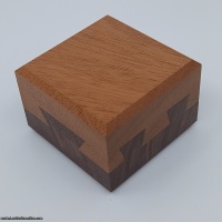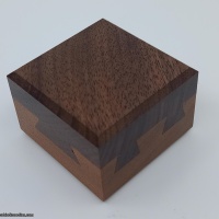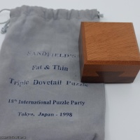 Designed by Robert Sandfield and expertly crafted by Perry McDaniel from Walnut and Mahogany. This puzzle has six dovetails to fat and two thin. The puzzle comes complete with printed canvas bag and information sheet and is number 126 of a limited edition of 200.