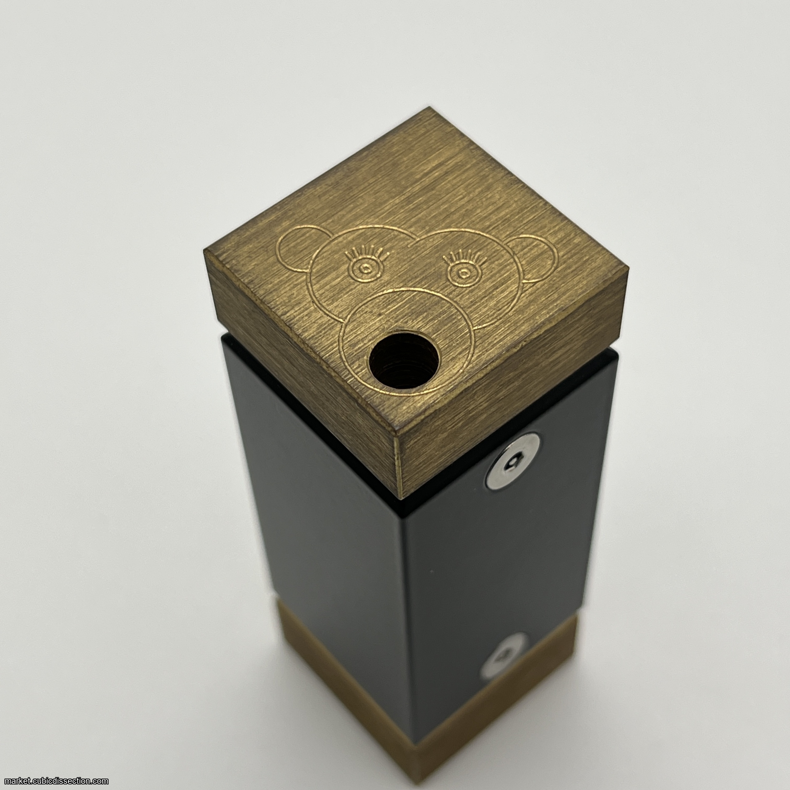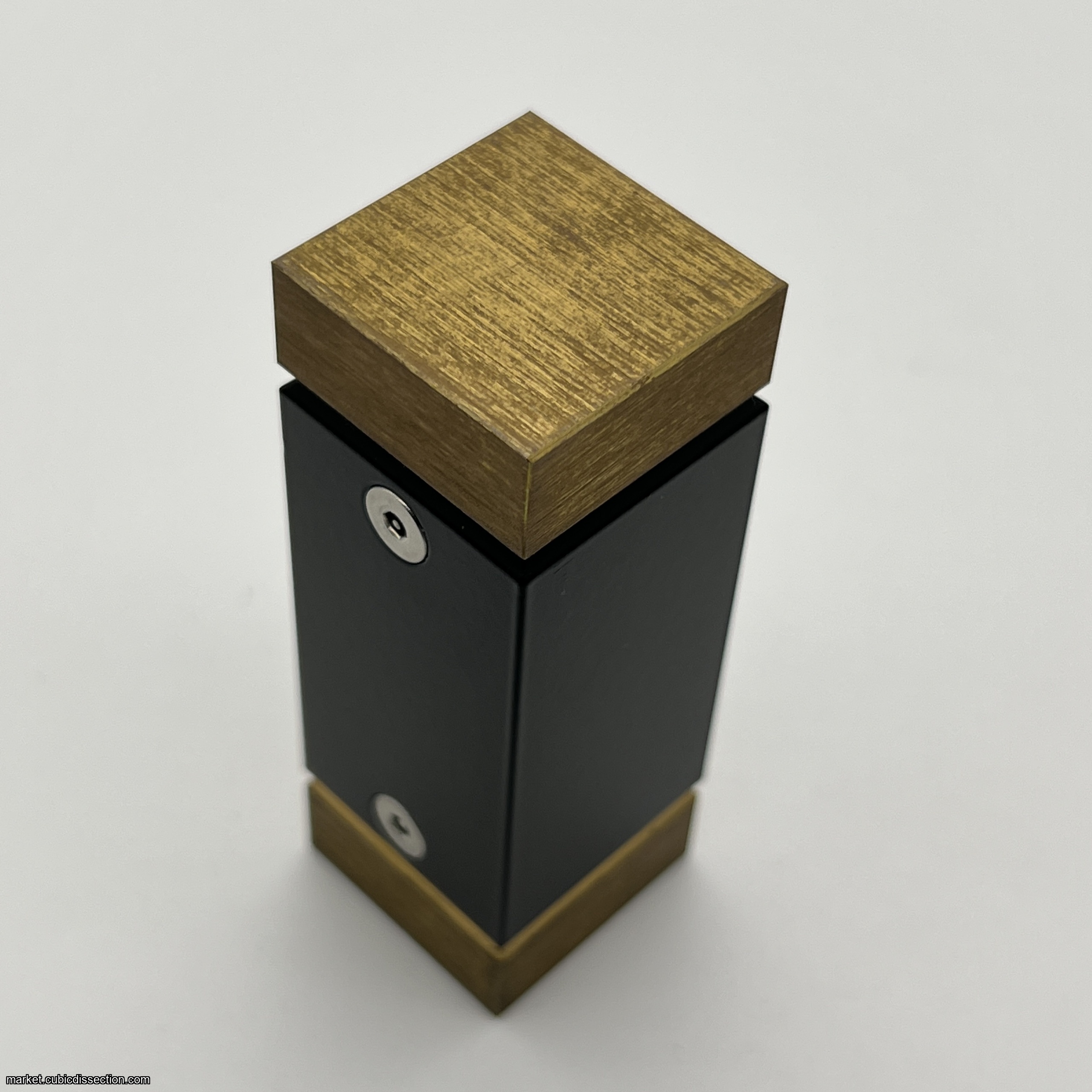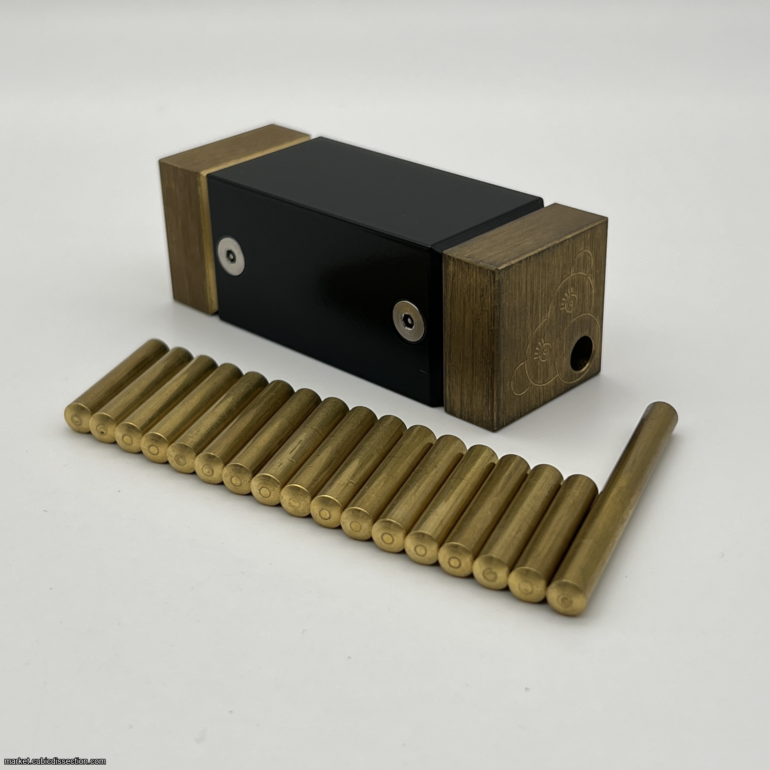 The construction of this puzzle is impressive. Solid brass ends cap an aluminum core, with bananas made from very accurate and nicely milled brass stock. The feel and heft of this puzzle speak to its quality.