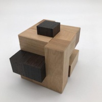 Fidget burr was an easy decision to make. A seemingly simple 3x3 cube, it's actually a five-piece interlocking burr with a level 12 solution. Three burr pieces nest inside two identical frame pieces. Disassembly of this puzzle is VERY tricky, with many false paths and dead ends.  Fidget Burr is a ton of fun and it turned out very well.