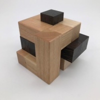 Fidget burr was an easy decision to make. A seemingly simple 3x3 cube, it's actually a five-piece interlocking burr with a level 12 solution. Three burr pieces nest inside two identical frame pieces. Disassembly of this puzzle is VERY tricky, with many false paths and dead ends. Fidget Burr is a ton of fun and it turned out very well.