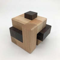 Fidget burr was an easy decision to make. A seemingly simple 3x3 cube, it's actually a five-piece interlocking burr with a level 12 solution. Three burr pieces nest inside two identical frame pieces. Disassembly of this puzzle is VERY tricky, with many false paths and dead ends. Fidget Burr is a ton of fun and it turned out very well.
