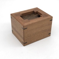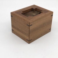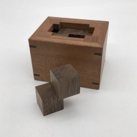 Brendan Perez is a talented new designer and i'm excited to be making his work available. Five Duo Cubes is a packing puzzle wherein five cubes at various offset positions must pack into a simple rectangular box. There are six different ways to join two 3x3x3 cubes together, including one rectangular block. Eliminating the single rectangular block, the remaining five can pack into a 9x7x6 box three different ways. The solution is made unique by adding protrusions to the frame of the box. Elegant in its simplicity, this puzzle is also quite tricky with a level 4.4.5.3 solution. This puzzle is shipped assembled.