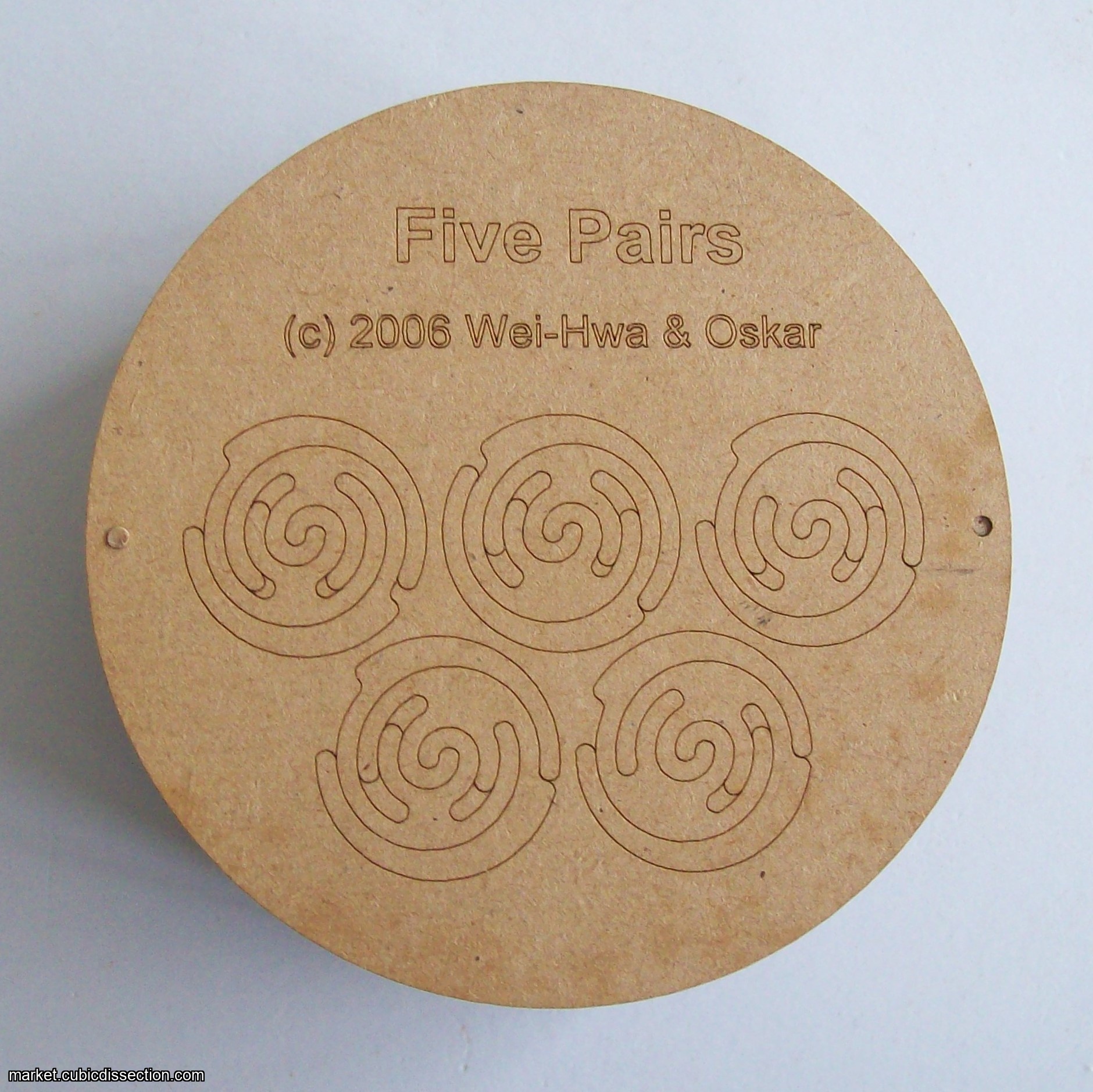 Assemble the ten pieces into five paired-up disks. Holes are okay.