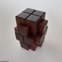 "Another of Guy Brette's devious designs, this twelve piece burr has two different stick lengths and an interesting "cross" finished shape. It's also quite difficult with a whopping level 9.9.9 solution."