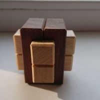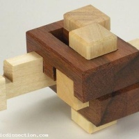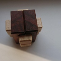 The puzzle is to assemble the 6 pieces so that you make what looks like a framed burr. The Vice comes in two pieces and then the 4 other pieces intersect in two directions through it. It is a level 12.1.2.1.2 burr.