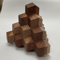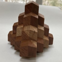 Four-Piece Pyramid by Stewart Coffin (STC #26). One of 30 made in 1979 of 1-inch cherry rhombic dodecadedrom bocks instead of edge-beveled cubes. From the collection of Dr. Benjamin Muckenhoupt.