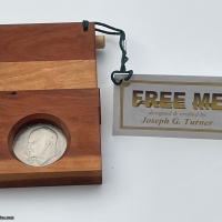 Selling my brother Andy's Free Me puzzle series collection.  As with all the Free Me puzzles, the goal is to remove the coin, usually a Kennedy Half Dollar.  Since this was a family version, the coin in this one is an Eisenhower $1 coin rather than the Kennedy $0.50 coin.  Only ~15 of this version were created.