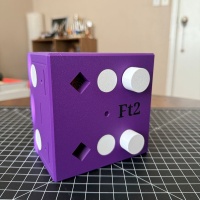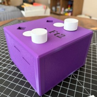 Both coins and exit slots are visible from the start, but do not assume this will be easy. As with all good puzzles things may not be what they seem and, even after releasing the coins, there is still the reset to contend with. Free the Two has the same theme as the rest of the series with its purple color, moving white parts and multiple coin slots around the puzzle box. That is where the similarities end. This puzzle is much bigger. It measures 12.5 cm x 12.5 cm x 8 cm and weighs in at over 1.5 pounds. It takes about 25 print hours and has over 80 non-PLA parts.