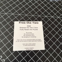 Free the Two is the third puzzle in my “Free the #” series. I used a higher quality printer and was able to create a higher quality puzzle with fewer design restrictions. Free the Two is a big step up from Free the Five and Free the One. Free the Two is a mechanical puzzle with the goal of releasing 2 coins.