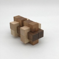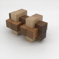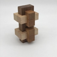 If you like solving one six piece burr, how about two at the same time! With a difficult level 18.6.3 solution, this puzzle is not for lightweights! Tricky and entertaining, and displays very well once solved. Three different woods used for aesthetics and also to give the solver a chance (this puzzle would be exponentially more difficult in solid wood). Logan also designed a four by four burr which I will make available in the next update.