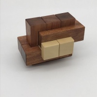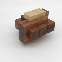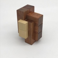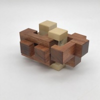 This second iteration in the Galaxy series has a very different solution than Galaxy one, upping the ante with a level 7 solution. Movement is expansive since it goes largely in the opposite direction that Galaxy 1 did. The solver faces the same conundrum they did with Galaxy one, being easily able to identify the vertical pieces yet arranging the marblewood pieces in the spiral shape remains the challenge. As before, I had to charge a bit more for this puzzle because of the expensive woods used, but I think you'll agree it was worth it...the holly and Bubinga contrast each other beautifully!