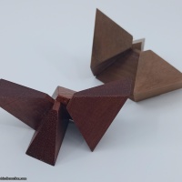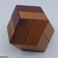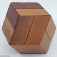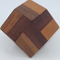 This is a six piece garnet made from contrasting fancy woods. I have been unable to locate a makers mark but the puzzles works brilliantly with deep trapezoidal pieces (see the third picture!) It was kept with the other Coffin puzzles so may be one of Stewarts, it is consistent with his work.