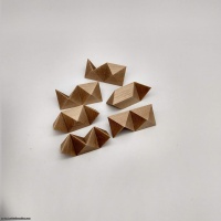 Gift Burr has the familiar shape of the traditional six piece star burr. Unlike the traditional burr, this puzzle is anything but simple to assemble. The notches are irregular and create a lovely parity issue where every time you attempt the last piece it simply doesn't line up. Not impossibly challenging for an experienced puzzler, this one is nonetheless trickier than it looks. Construction of this puzzle is excellent, with angles and dimensions dead on. It's a pleasure to handle a well made star burr since so many are poorly executed. This puzzle is shipped disassembled.