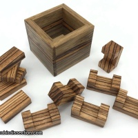 Another brilliant packing puzzle by the designer of the award winning "Casino" puzzle, Harun is a tricky assembly. Six notched sticks and six small planks pack into the box two different ways. The solution is trickier than is apparent given the simple pieces.