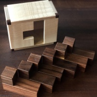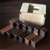"This was one of two of Laszlo's entries into the IPP Design Competition and a TOP TEN Vote Getter. You know when Laszlo makes designs a packing puzzle that it will be a good one! I think this one has a difficult to find Aha! moment, making it even more satisfying."