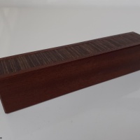 Crafted from solid quartersawn Sapele, this box will be VERY stable. The lid uses a beautiful crossgrained Wenge veneer for that decorative touch. Fit and finish are excellent all the way around.
