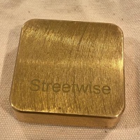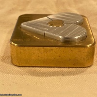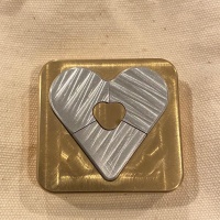 Heart in Heart by Will Strijbos. Aluminum and brass. Not very difficult but an excellent collectible puzzle. There is a small discoloration spot on the front. It is on the post in the center of the heart. Overall the rest has minor scratches from puzzling.
