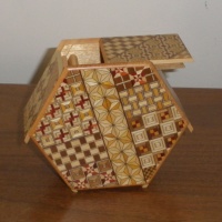 This japanese puzzle box is 5 inches in diameter, and was made about 5 years ago.