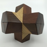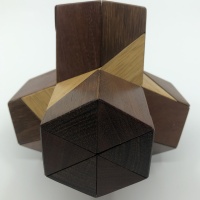 Hexagonal Prism : Six dissimilar pieces assemble one way. This puzzle is in excellent condition and is inscribed STC 1984. It is probably made from Rosewood, Mahogany and Limba.