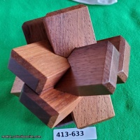 Crafted in Tom's workshop in 2006, three different pieces and their mirror images assemble into a shape that looks similar to STC #106 (Lock Nut). Fairly easy to take apart, but it is a BEAST to assemble. AKA Oblique Burr.