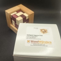 Although the name is similar to Inelegant Squares, this puzzle is completely different. The pieces, which are made up of the typical Inelegant 3x4x5 pieces are almost square in shape. Now pack the 6 pieces into the box as shown. I think this is my new favorite of the Inelegant puzzles that Haym has designed. Only one assembly can be placed inside the box. Some really nice woods make this an attractive puzzle too!
